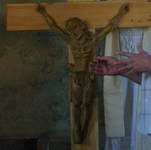 V kapli jsme mohli obdivovat dřevěný kříž s ukřižovaným Kristem. O jeho zhotovení - renovaci se zasloužil student výtvarné školy Václav Pazdera s kolegou. Oba dostali jako poděkování textilní figuríny ANDĚLA, které jsme dostali darem z Domova pro matky s dětmi v Jiřetíně p. Jedlovou.
